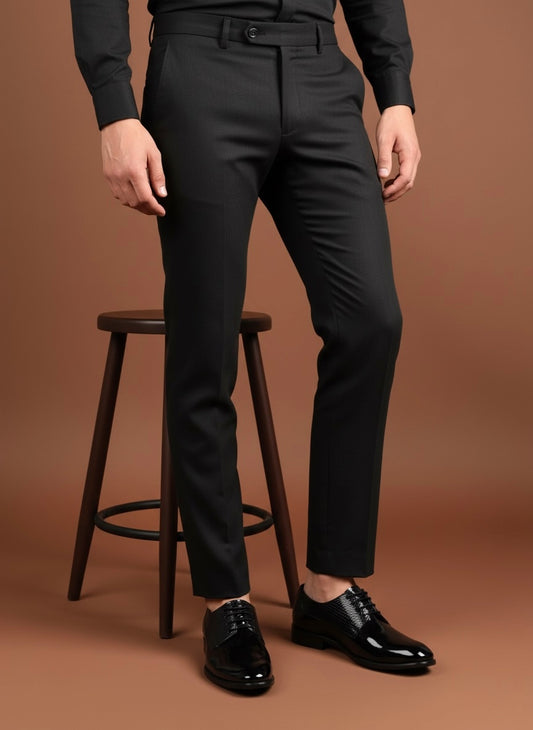 Yes — sleek chelsea boots in black or brown sit perfectly under slim tailoring for a contemporary finish.
