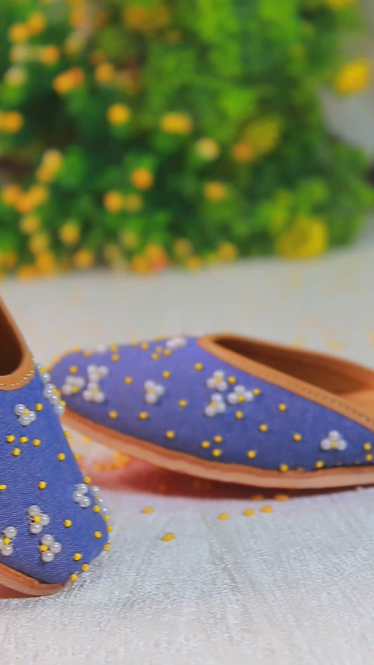 Discover our exclusive collection of denim jutti—the perfect blend of traditional charm and modern style. Each Punjabi jutti for women in this collection is meticulously handcrafted, offering a unique fusion of comfort and fashion. These designer juttis are ideal for any occasion, adding a touch of elegance to your wardrobe. Whether you're looking for casual wear or something to elevate your outfit, our ladies juttis are versatile and stylish. Explore our range of handcrafted footwear and find the perfect juti for women that combines tradition with contemporary design.
