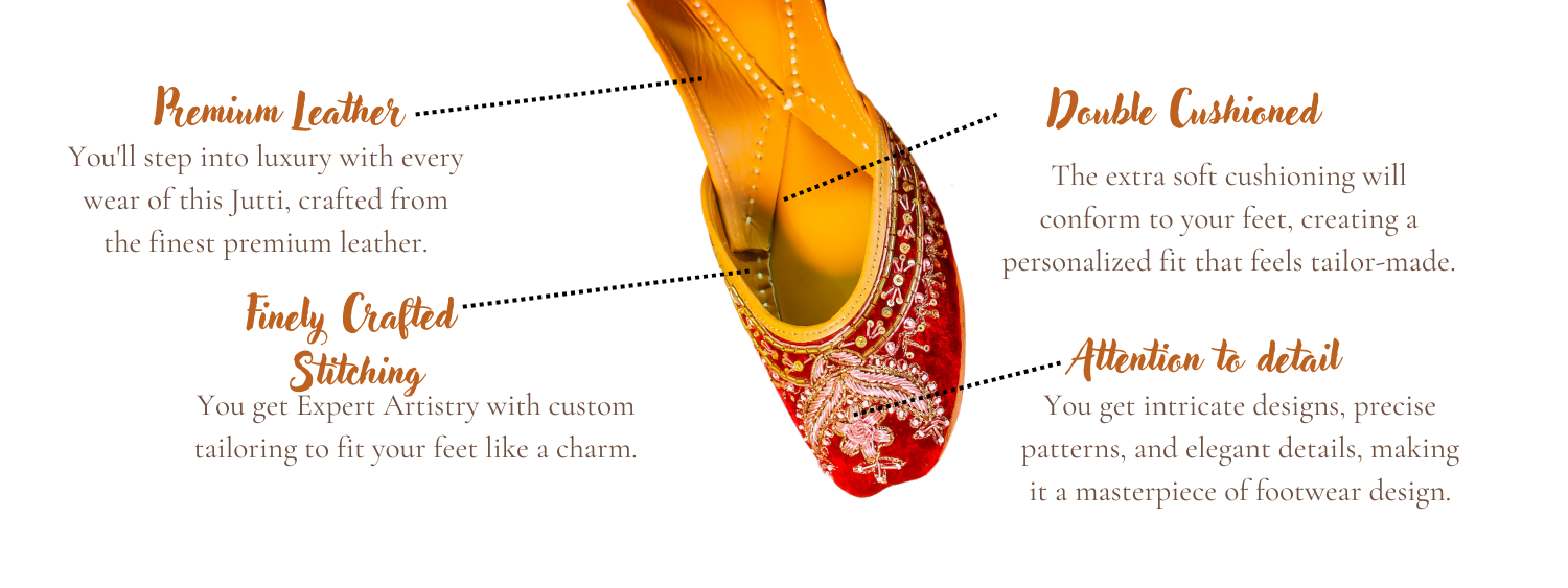 Customize you dream jutti in any design, color and size. Be it casual or bridal jutti we create every pair with premium leather and unparalleled comfort.