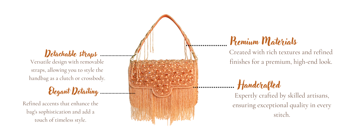 It’s a lively mehendi evening, and you reach for the Kiara handbag, its vibrant design adding a playful yet elegant touch to your outfit. As you step into the celebration, your friends instantly notice. “Where did you get that bag?” one asks, admiring its unique design. You smile, feeling the curiosity in the air. With its spacious interior for all your essentials and stunning design, the Kiara is more than just a handbag, it’s a statement piece. “It’s perfect for this evening, isn’t it?” you reply, knowing it’s the ideal mix of style and functionality that everyone’s curious about.