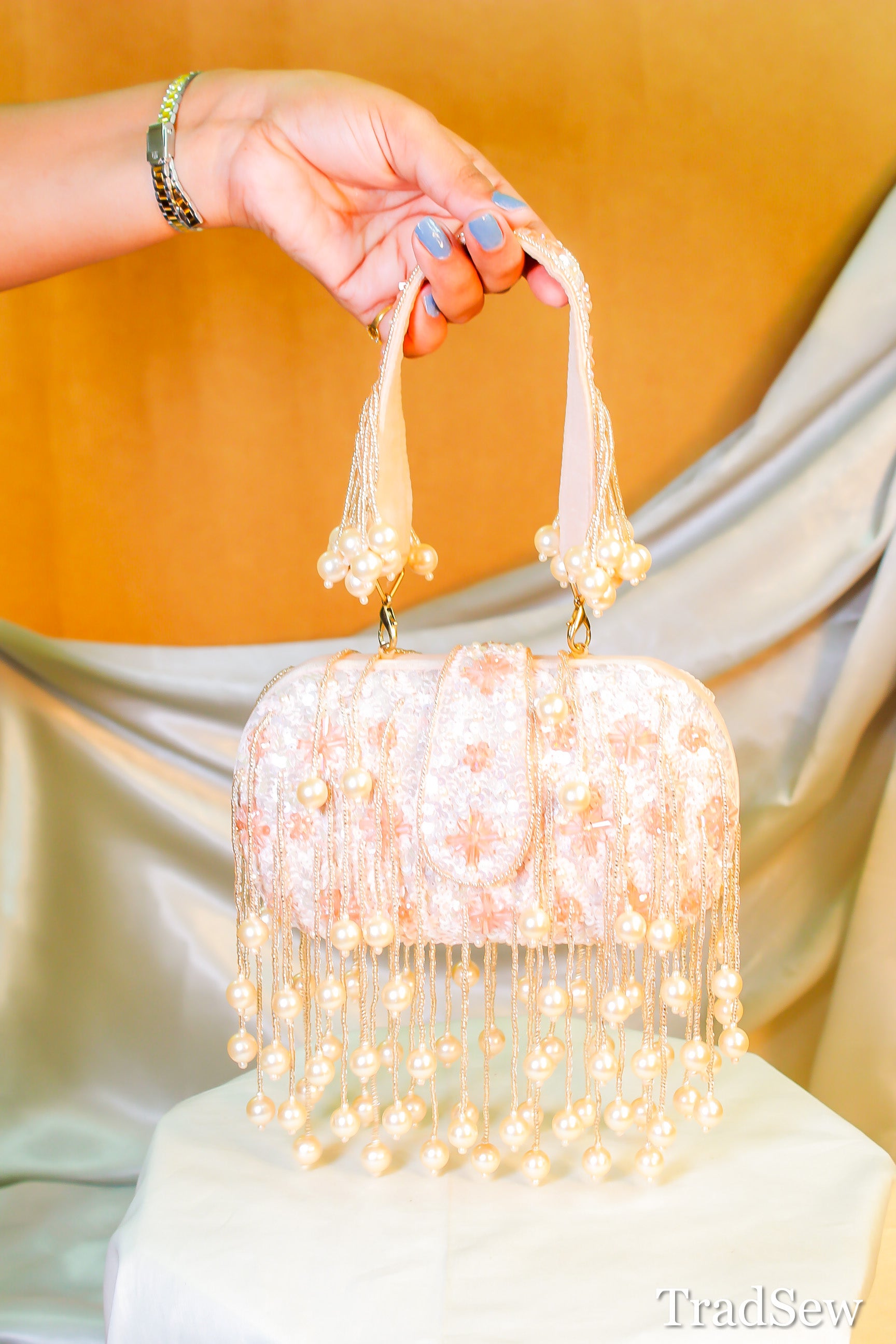 Imagine a sunlit garden wedding, a day filled with joy and celebration. Dressed in an exquisite lehenga with golden details, you hold the Mehar Pink Clutch, its delicate blush tone perfectly match the romantic atmosphere. As you walk through the crowd, the Mehar catches the sunlight, sparkling just enough to draw glances. Friends ask about it, admiring how it complements your look. Lightweight yet spacious, it holds everything you need, from a lipstick to a heartfelt note for the bride.