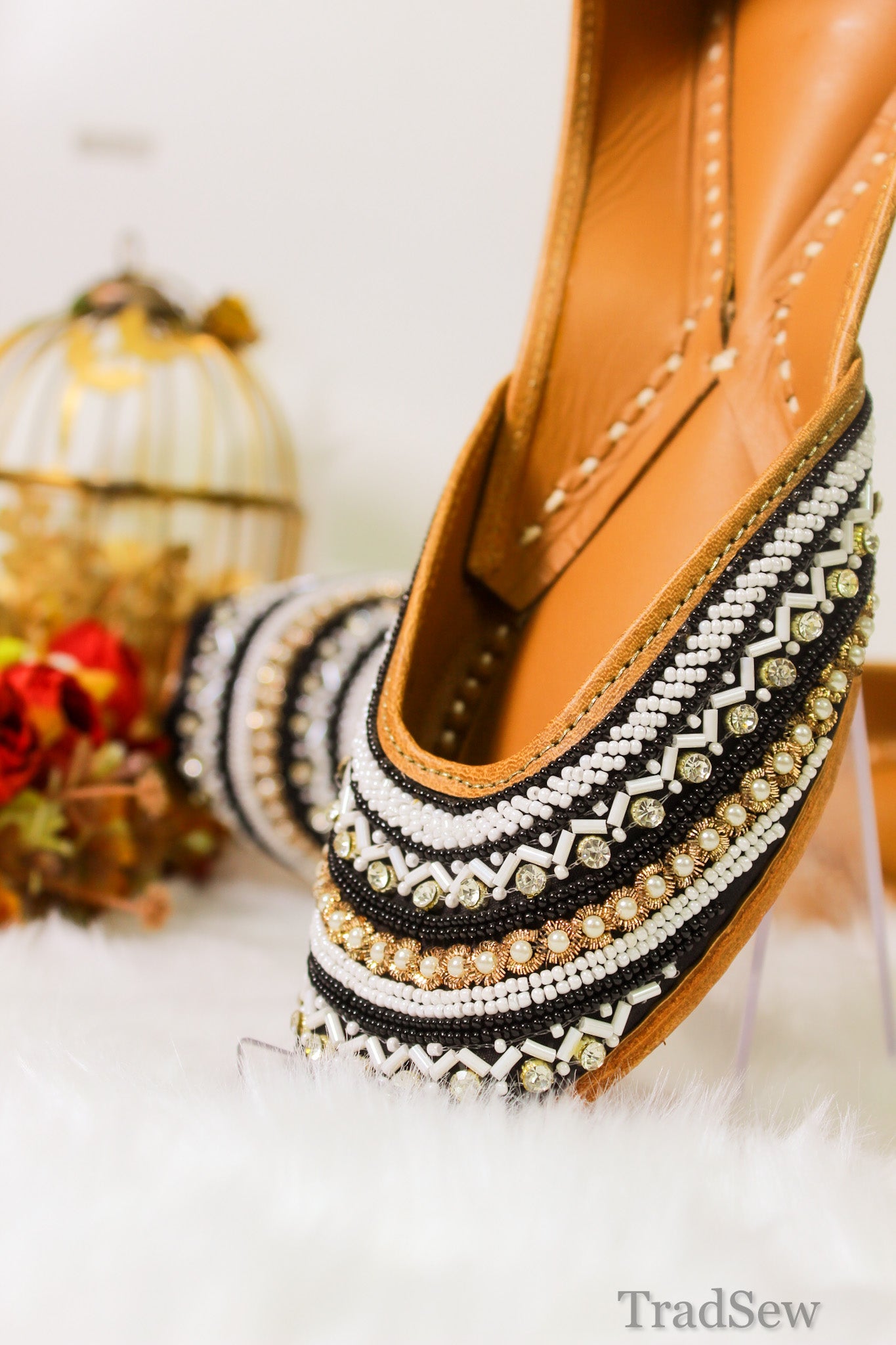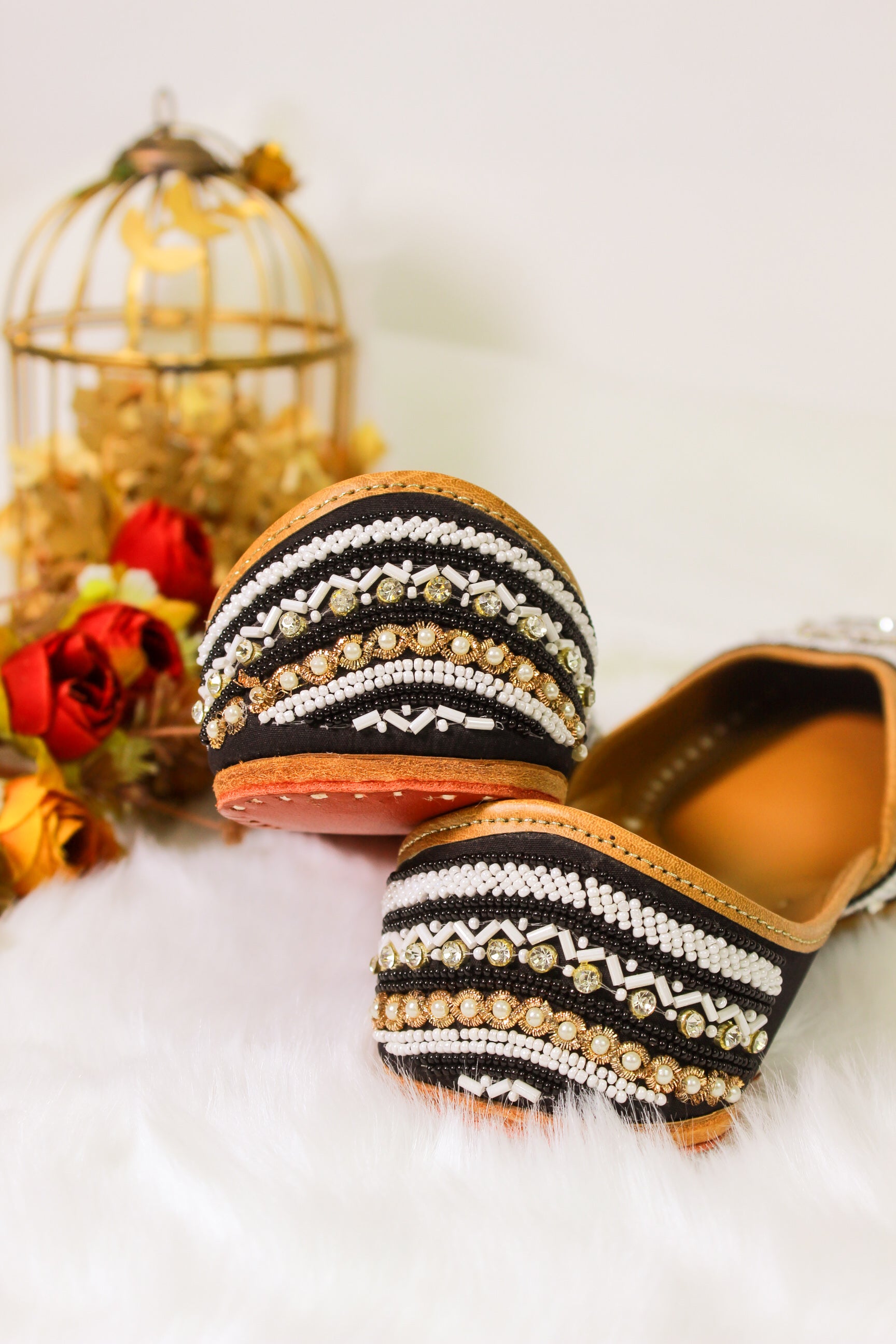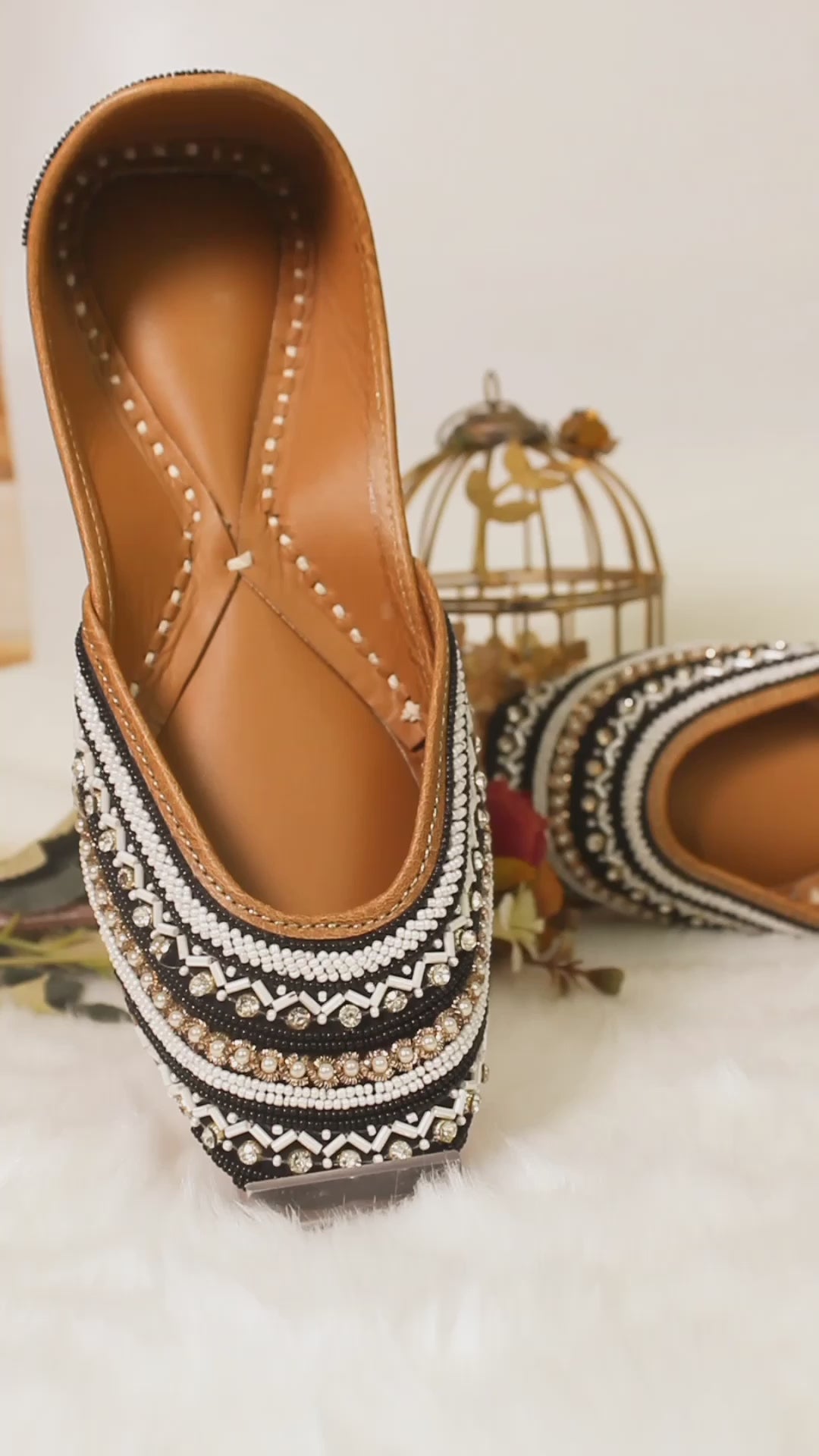 - Striking Monochrome Design: Featuring a bold contrast of black and white beads, this jutti is a statement of timeless elegance.
