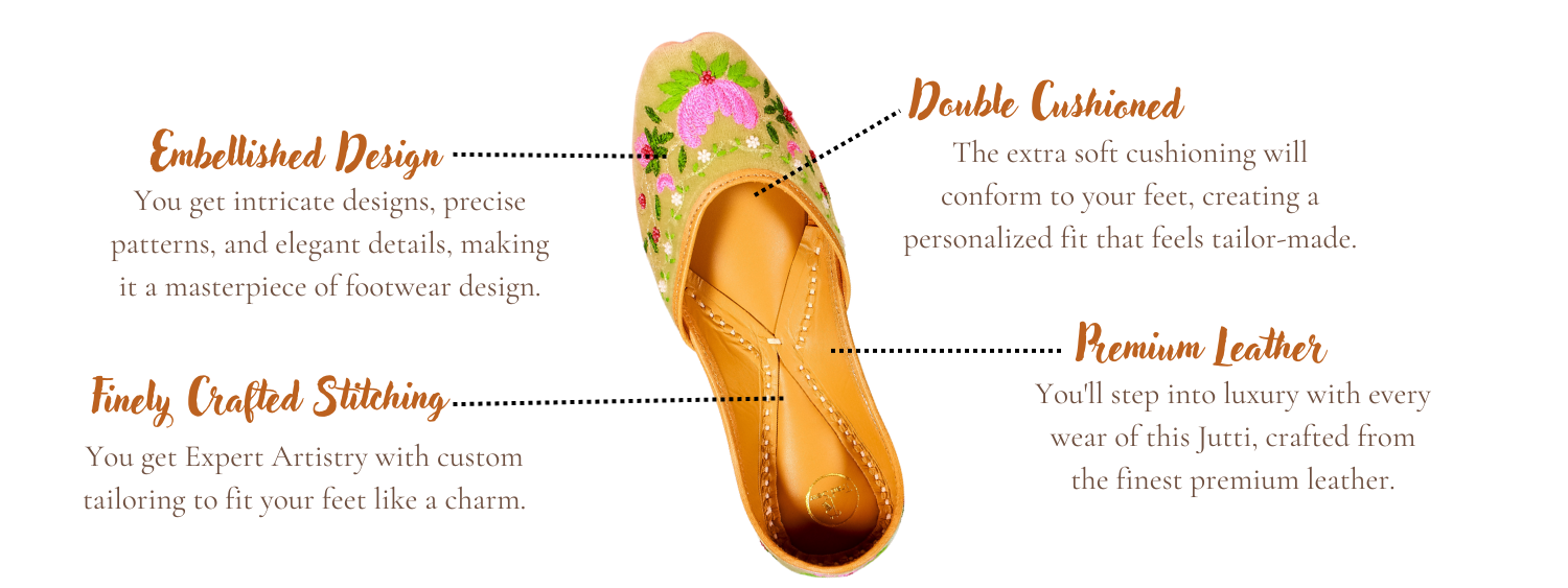 Customize you dream jutti in any design, color and size. Be it casual or bridal jutti we create every pair with premium leather and unparalleled comfort.