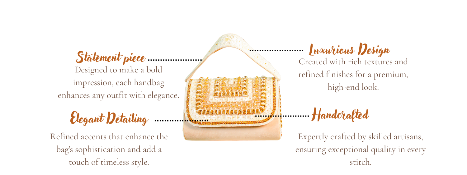 At your best friend’s engagement, you arrive in a stunning beige saree, perfectly paired with the Prisha Beige Handbag. Its gold tones and gem work sparkle under the lights, drawing endless compliments, “Your handbag is stunning!”Elegant yet spacious, Prisha keeps your essentials close while making you the center of attention all evening.