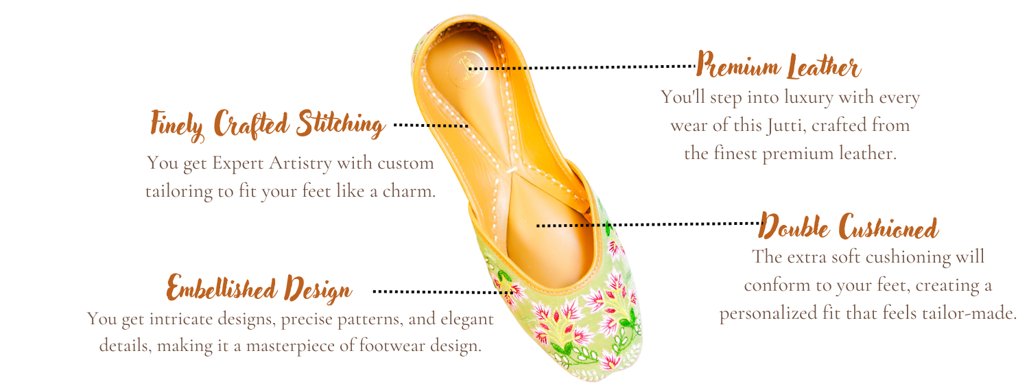 Customize you dream jutti in any design, color and size. Be it casual or bridal jutti we create every pair with premium leather and unparalleled comfort.