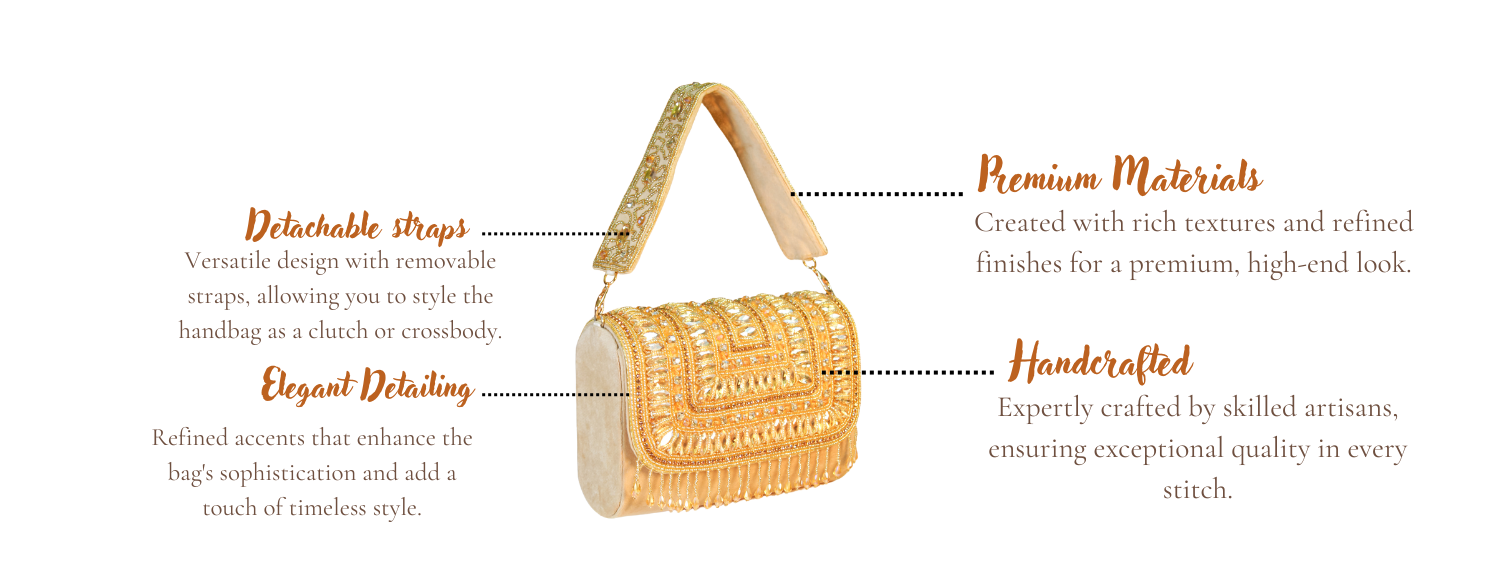 You’re getting ready for a night out and spot the Vaani Golden Purse. Its shiny gold colour practically screams, “I’m here to make an entrance!” As you walk into the event, the purse catches the light, and everyone’s attention. It’s stylish and surprisingly spacious. Your phone, cards, and lip gloss fit perfectly, leaving you plenty of room to still carry your confidence. The Vaani Golden Purse isn’t just a bag, it’s the fun, chic way to add some sparkle to your evening.