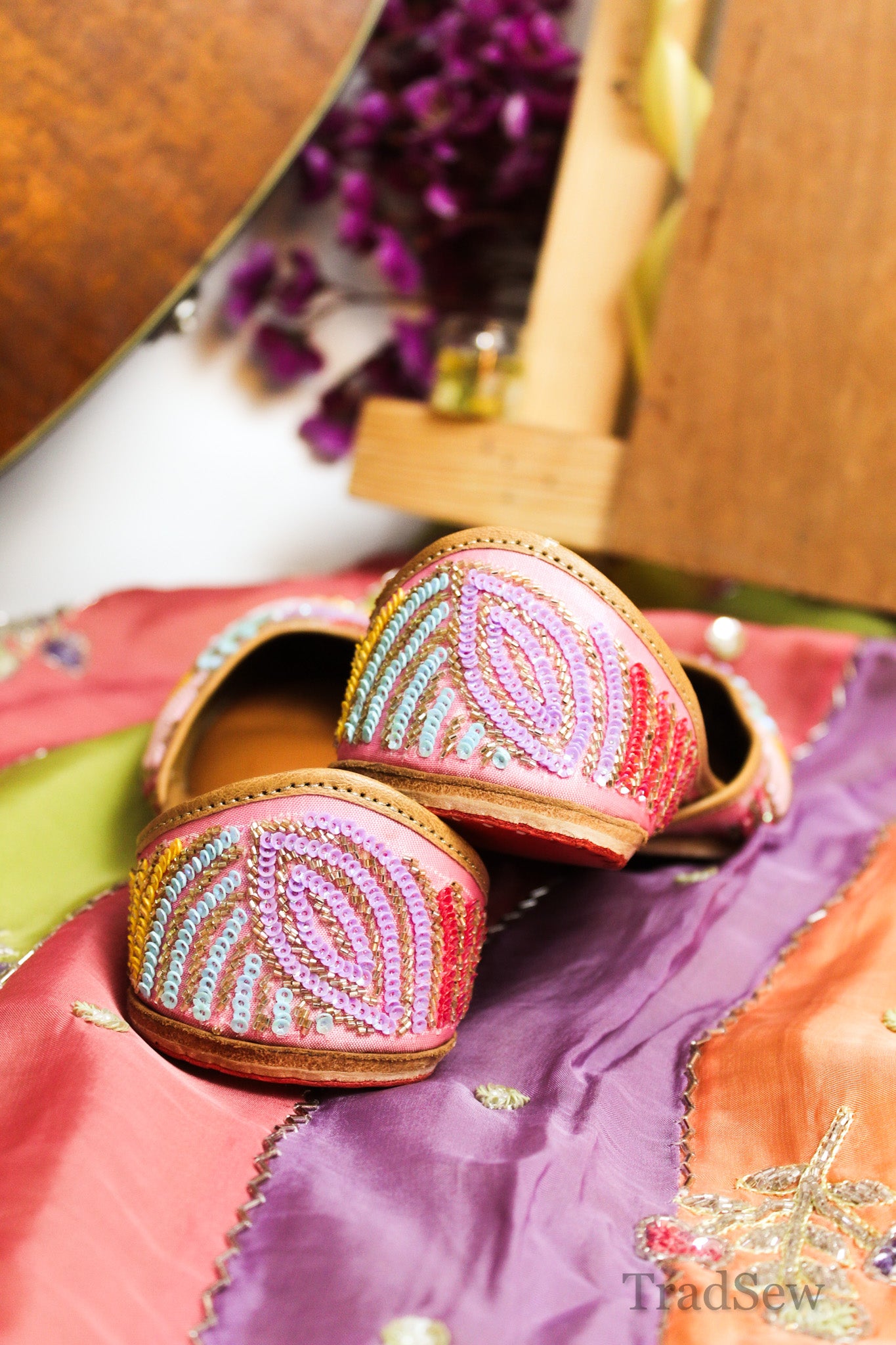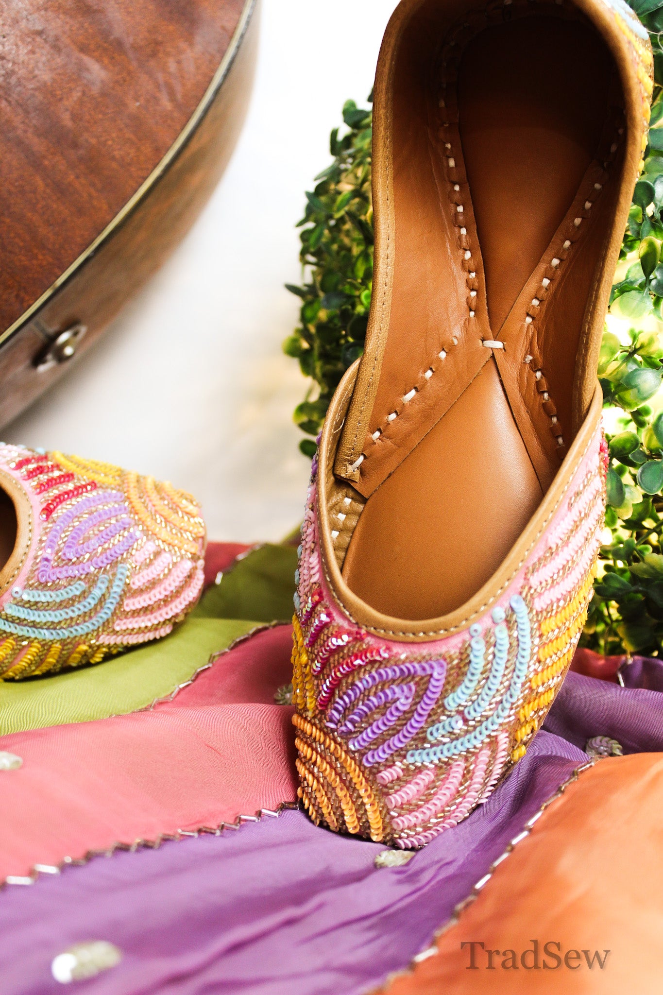The Vibrant Carnival Embroidered Jutti is a punjabi jutti for women, featuring handcrafted, colorful embroidery that captures the essence of a lively festival. Made from premium leather and meticulously hand embroidered, this mojari ensures plush comfort with a padded footbed. Perfectly versatile, it pairs seamlessly with any outfit, making it an elegant and vibrant addition to your collection.