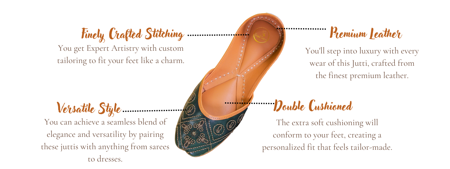 | Design | Stylish juttis blending traditional and modern designs | Basic juttis for ladies with limited options | High end designs but not always practical |